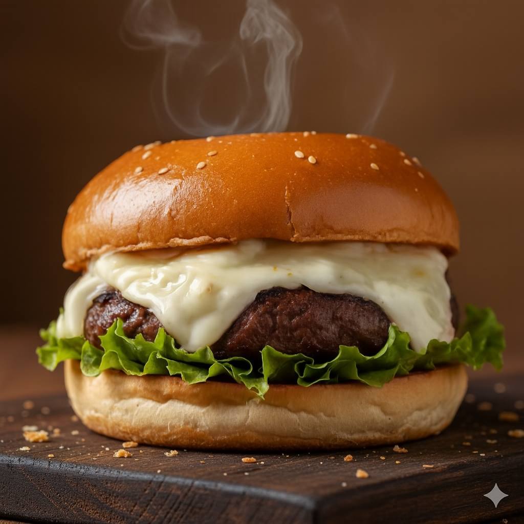 Burger clássico com queijo mussarela, alface e tomate simples e saboroso!