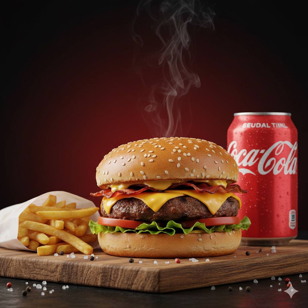 Um hambúrguer artesanal saboroso, acompanhado de batata frita crocante e 1 refrigerante gelado. A opção ideal para quem busca uma refeição completa e deliciosa!