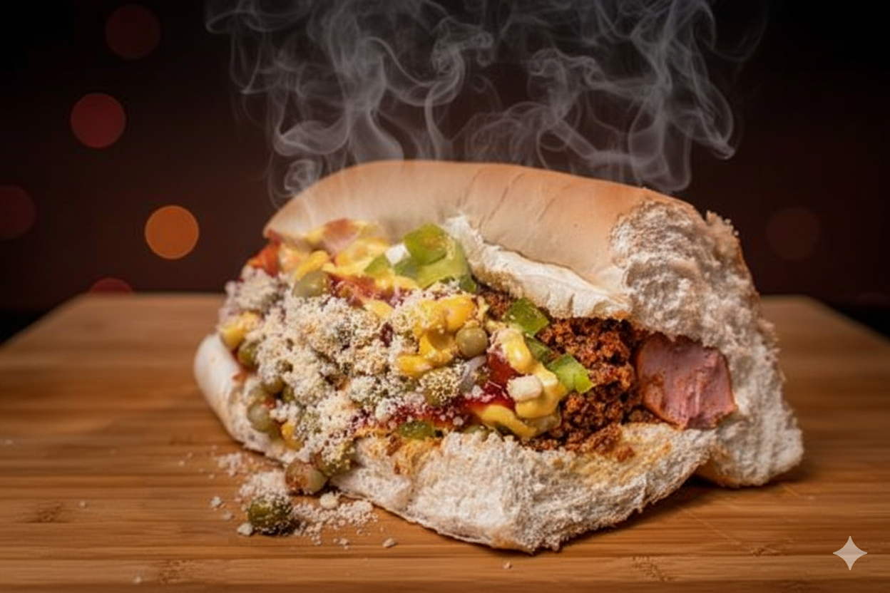 Ingredientes: Pão Brioche | Blend de Carne | Salsicha | Mussarela | Milho